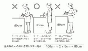 キッチンの高さ = 身長 ÷ 2 + 5cm